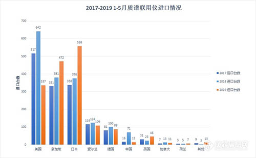 當前,中國市場上的商品化的質譜聯用儀還是以進口為主,質譜聯用儀的進口情況在一定程度上,也反映了我國目前質譜聯用儀整體市場的一些情況。從2018年3月,中美貿易戰打響,對整個科學儀器市場產生重大影響。質譜聯用儀作為一類重要的科學儀器,在貿易戰中到底受到了怎樣的影響也備受關注。為此,儀器信息網特別對2017、2018年及2019年1-5月,海關質譜聯用儀進口數據進行了匯總分析,為大家了解中國目前質譜聯用儀市場做一個參考。