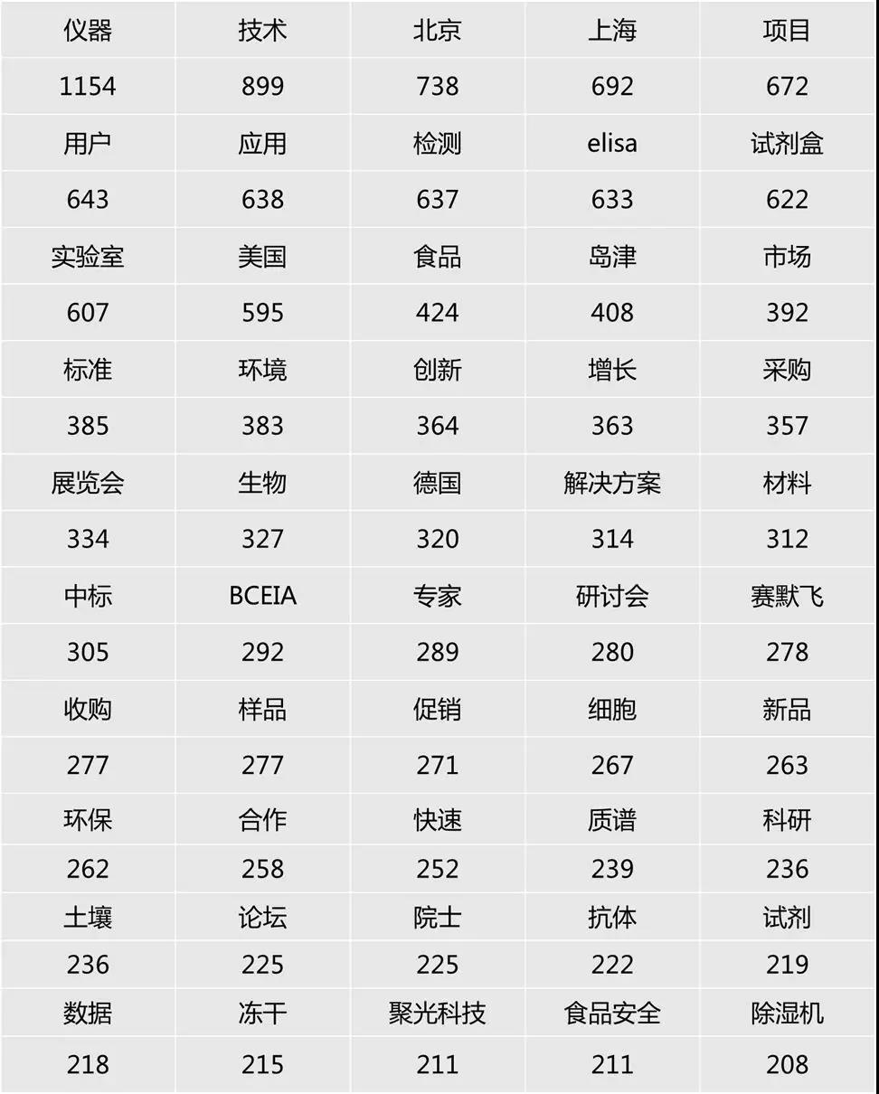 從統(tǒng)計中,我們還看到了用戶對于儀器創(chuàng)新的期盼。快速、高效、穩(wěn)定是分析儀器始終追求的優(yōu)質(zhì)性能,隨著現(xiàn)場檢測需求的增多,便攜式、自動化、手持式、實時、智能化被提到的頻率越來越高,廠商在宣傳新品時也往往用到這類詞匯。