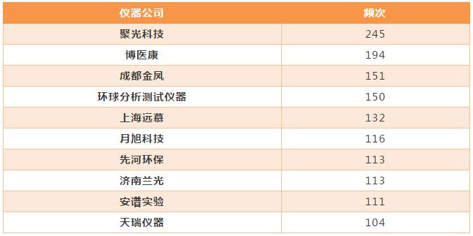 國內(nèi)儀器公司活躍指數(shù)TOP10