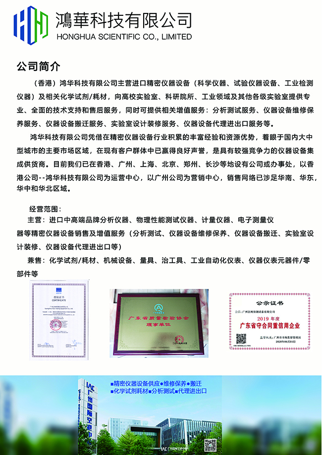 廣州法柯檢測設備有限公司是(香港)鴻華科技有限公司國內營銷中心,專注中高端品牌 分析儀器、物理性能測試儀器、計量儀器、電子測量儀器等產品銷售與維護,兼售 機械設備、量具、治工具、工業自動化儀表、儀器儀表元器件/零部件、工業試劑/耗材等。2019年廣州法柯檢測設備有限公司正式成為德國業納JENOPTIK集團霍梅爾Hommel工業測量儀器國內授權一級代理商、華南區域戰略合作伙伴。