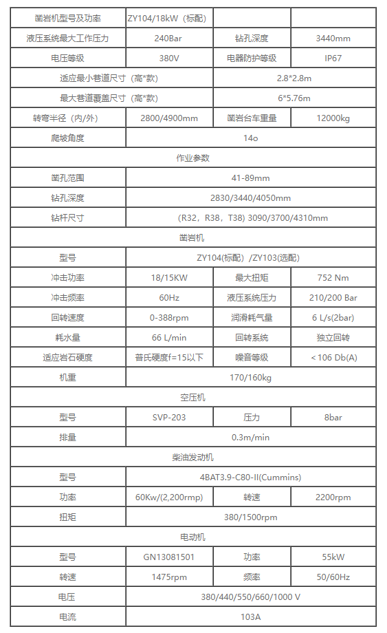 ZY104M鑿巖機帶有雙緩沖減震系統,確保鉆具最佳的使用壽命;